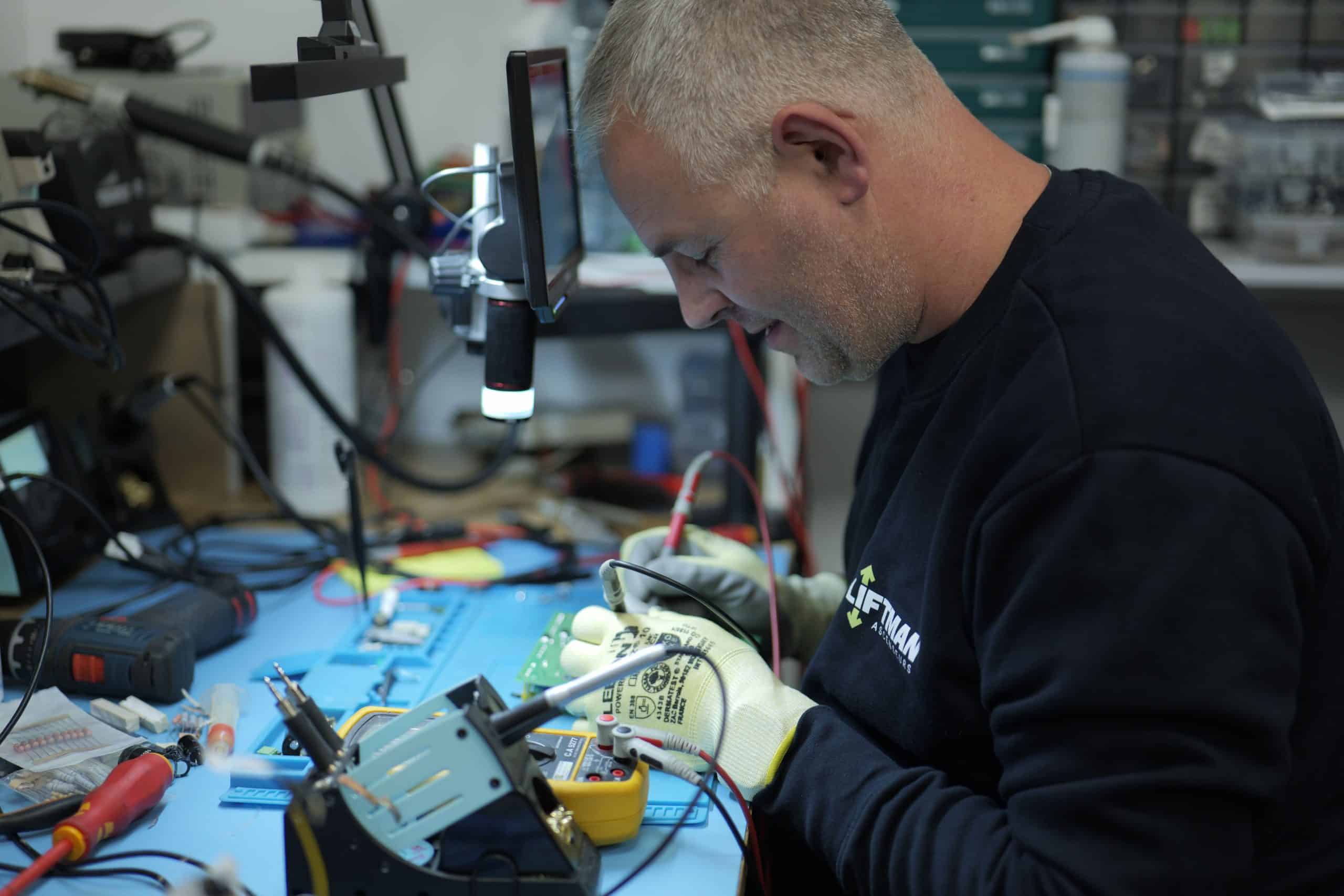 Technicien Liftman en intervention sur le tableau électrique